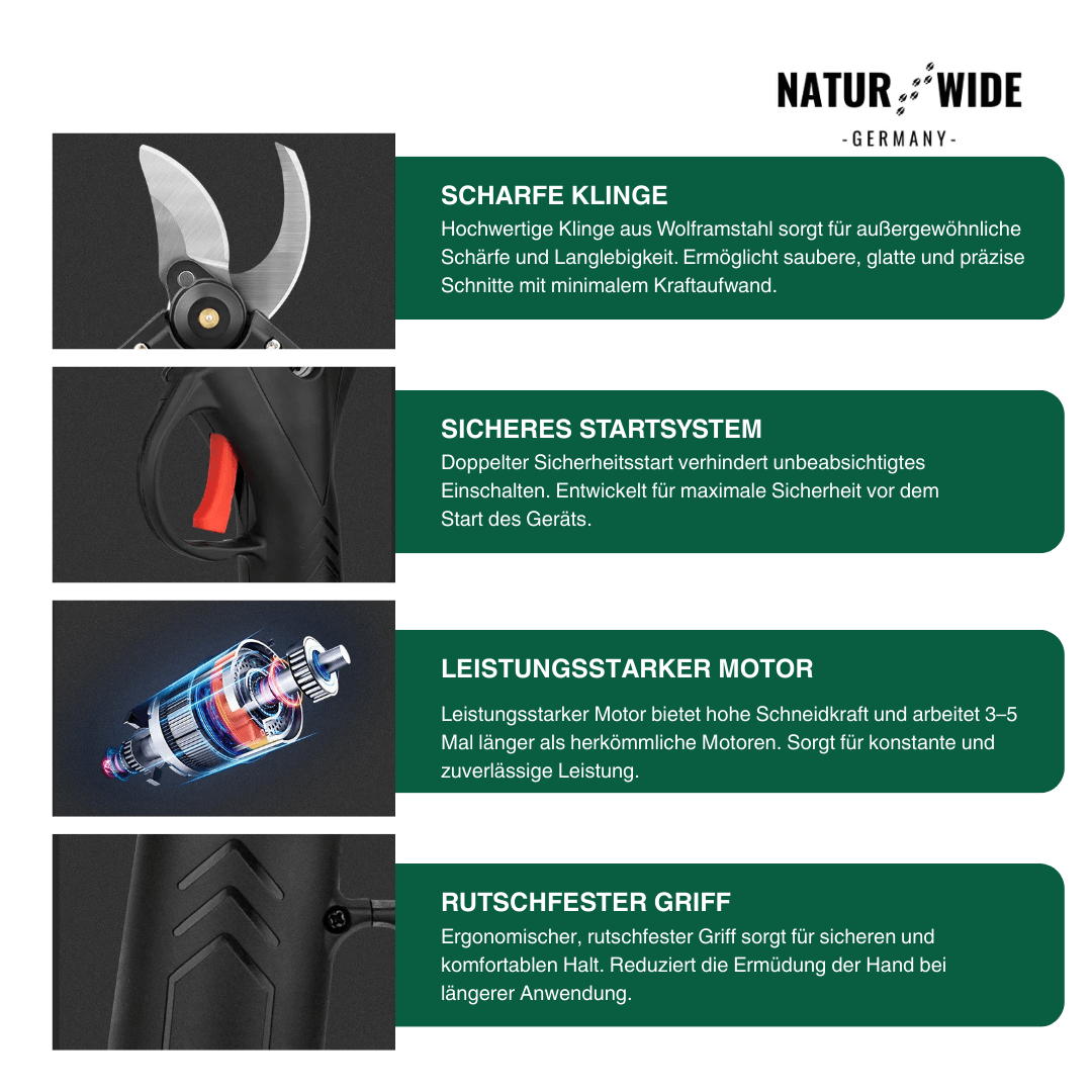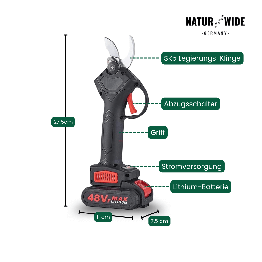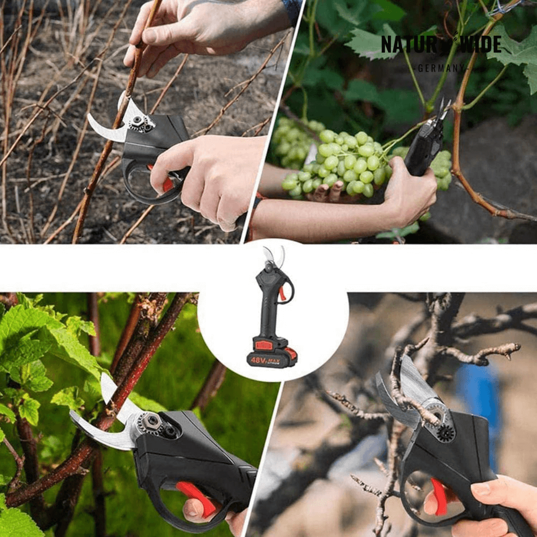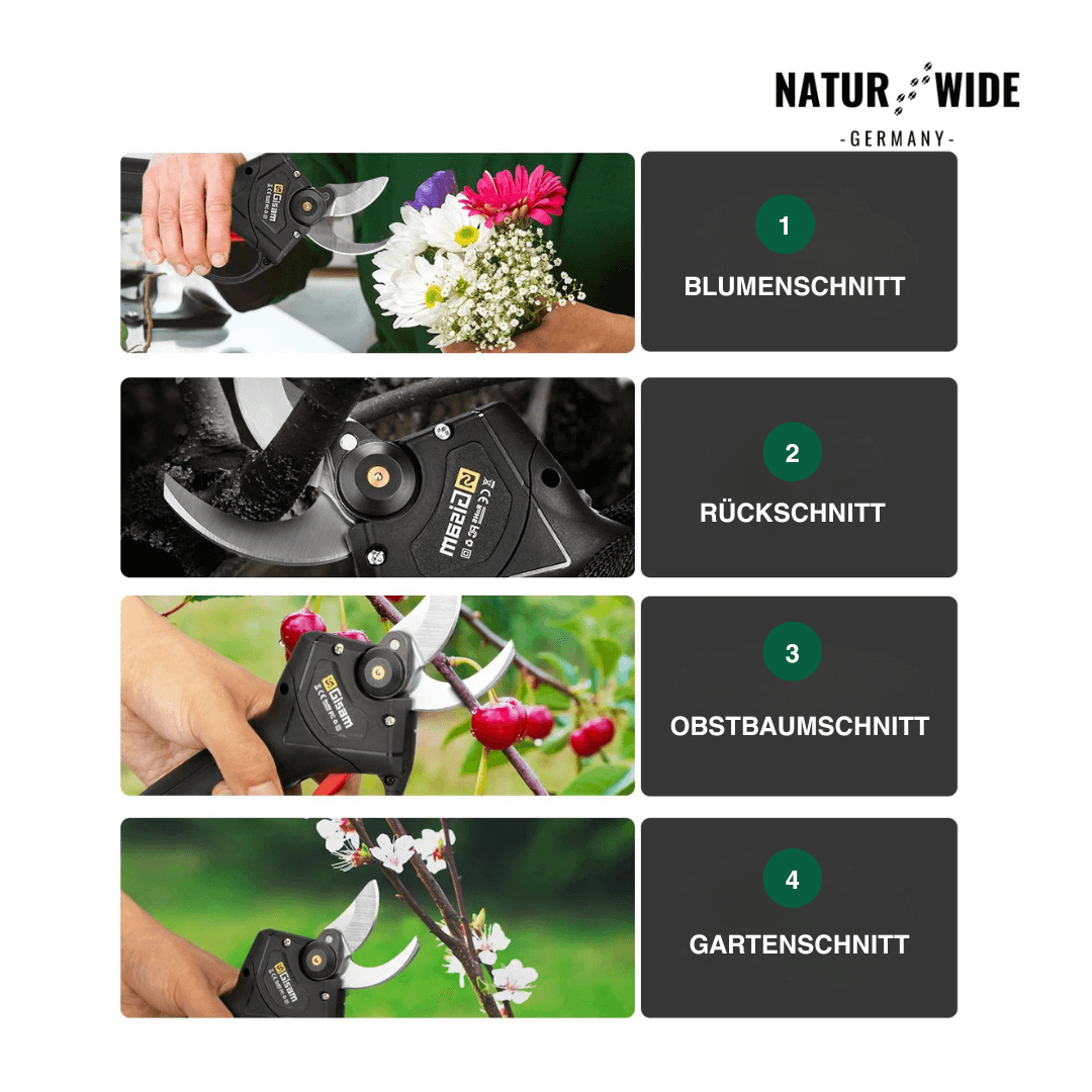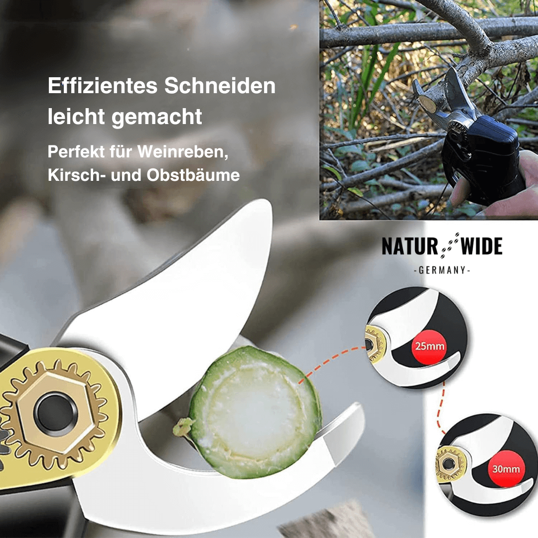 Machen Sie Schluss mit schmerzenden Händen und mühsamem Schnippeln. Die Akku-Astschere ist Ihr idealer Partner für den Obstbau, Weinberge oder den heimischen Garten. Mit ihrem kräftigen elektrischen Antrieb schneidet sie Äste und Zweige bis zu einem Durchmesser von 30 mm so leicht wie Butter – ein einfacher Knopfdruck genügt.