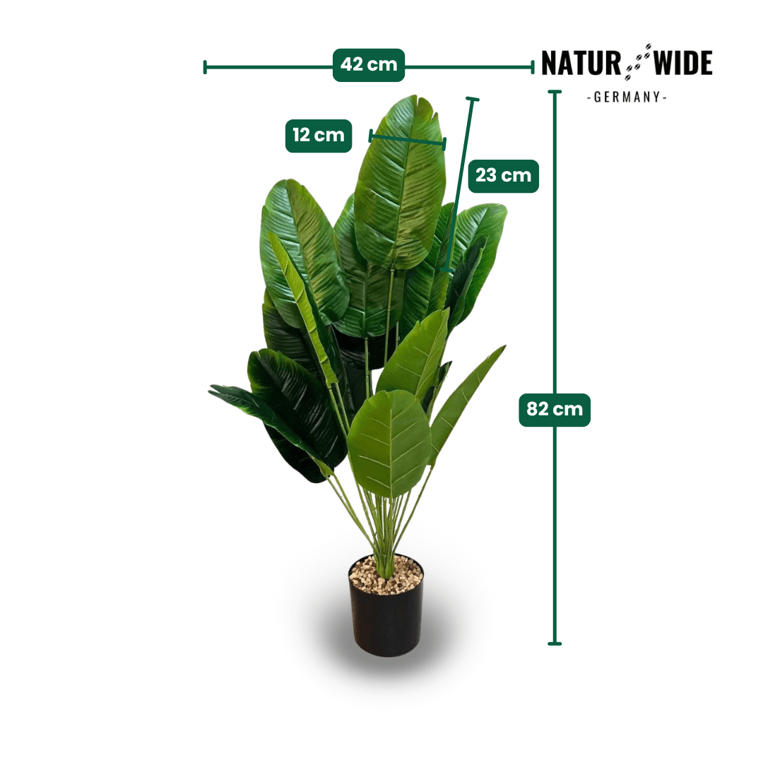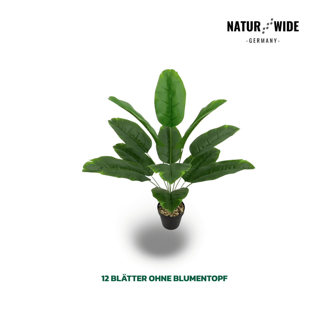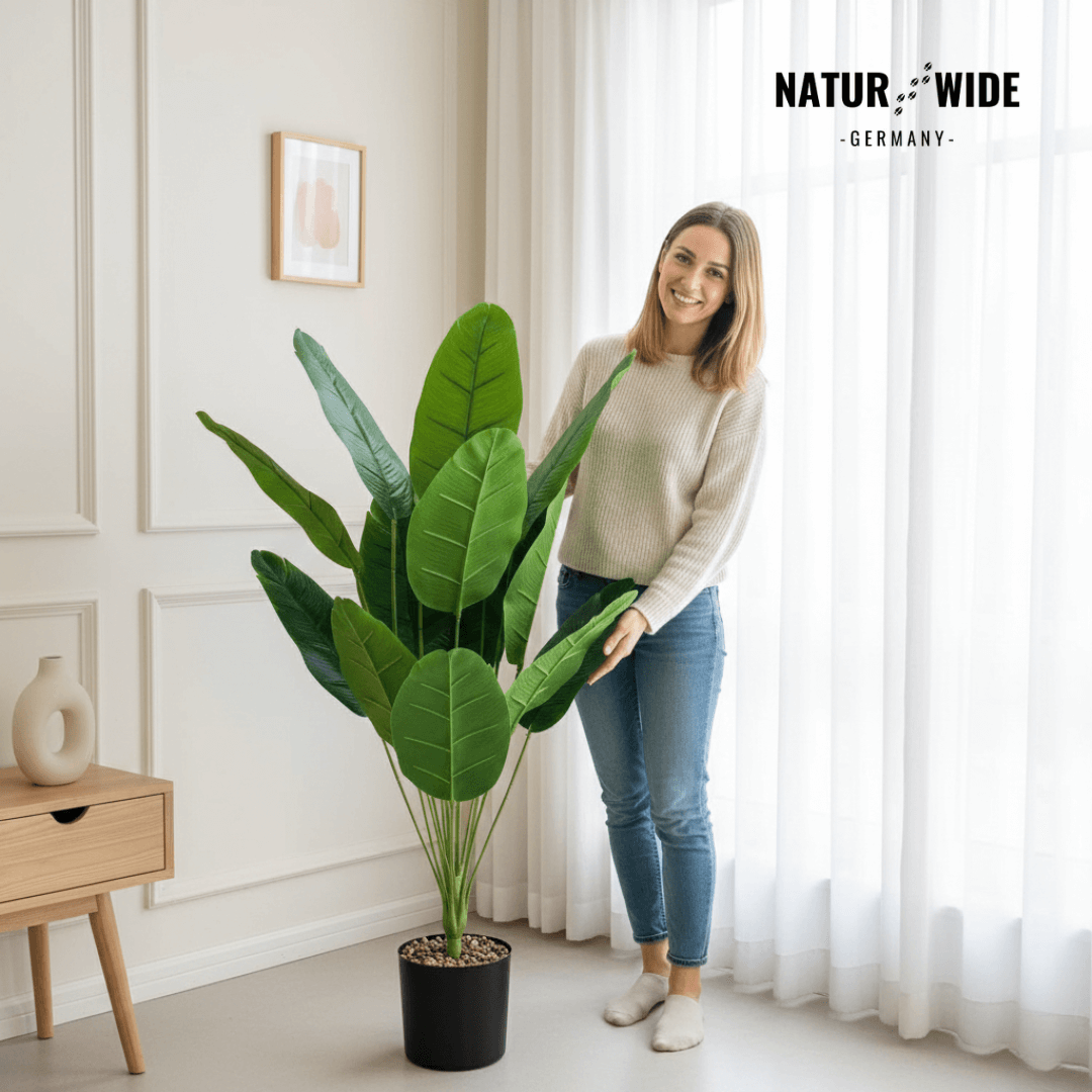 Bringen Sie frische Energie und Urlaubsstimmung in Ihr Zuhause mit dieser Großen Künstlichen Bananenpalme. Mit ihren großzügigen Blättern bietet sie ein volles, lebendiges Erscheinungsbild, das kaum von einer echten Pflanze zu unterscheiden ist. Das Besondere ist die "Real Touch"-Qualität: Die Blätter fühlen sich fleischig und natürlich an, statt wie billiges Plastik zu wirken.