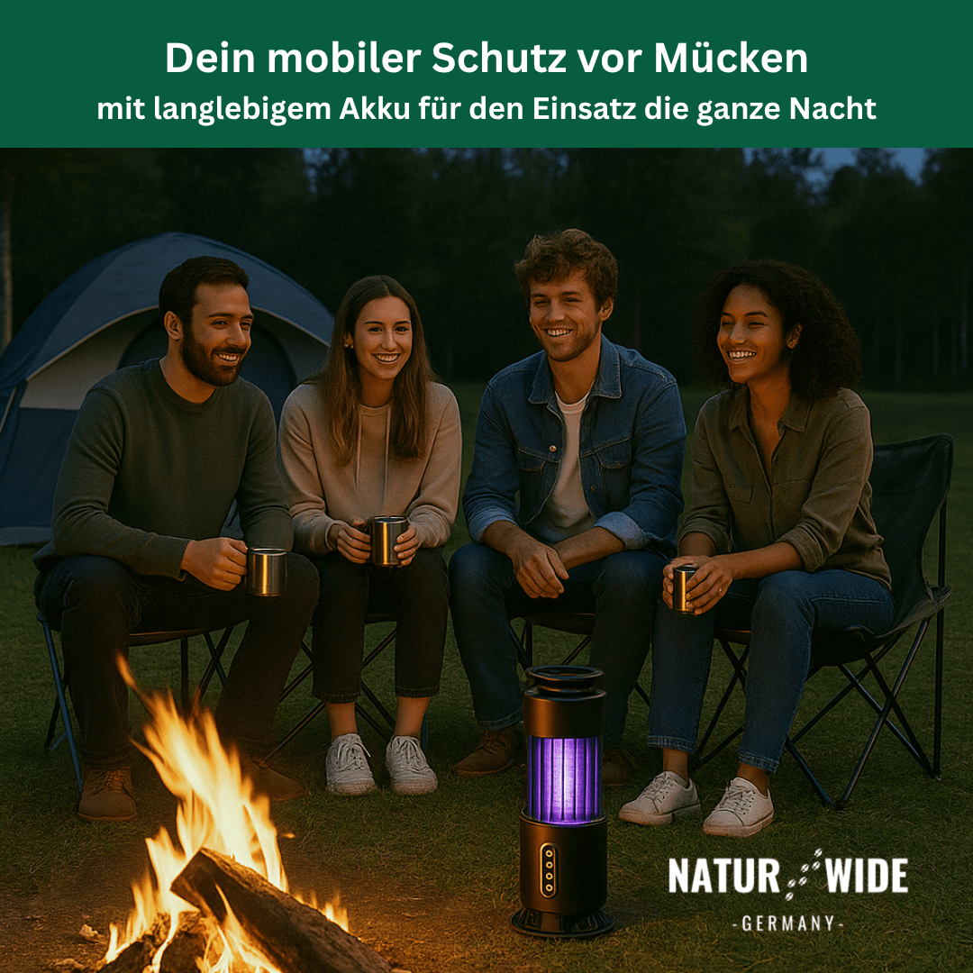 Ob im Zelt, Garten oder Schlafzimmer – die elektrische Mückenlampe von schützt dich zuverlässig vor Mücken & Insekten. Ganz ohne Chemie, dafür mit modernem 360°-Licht- und Saugmechanismus.
