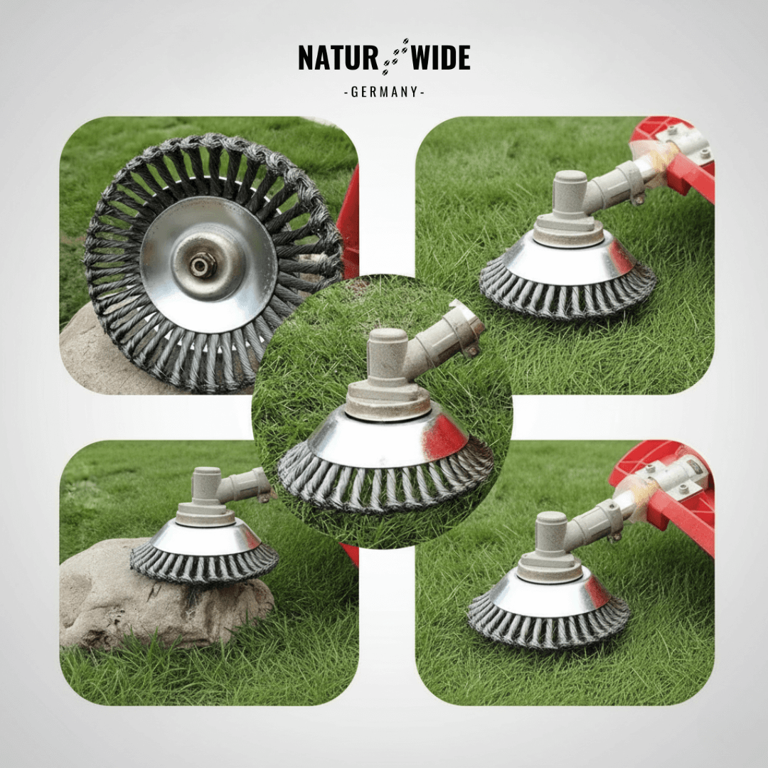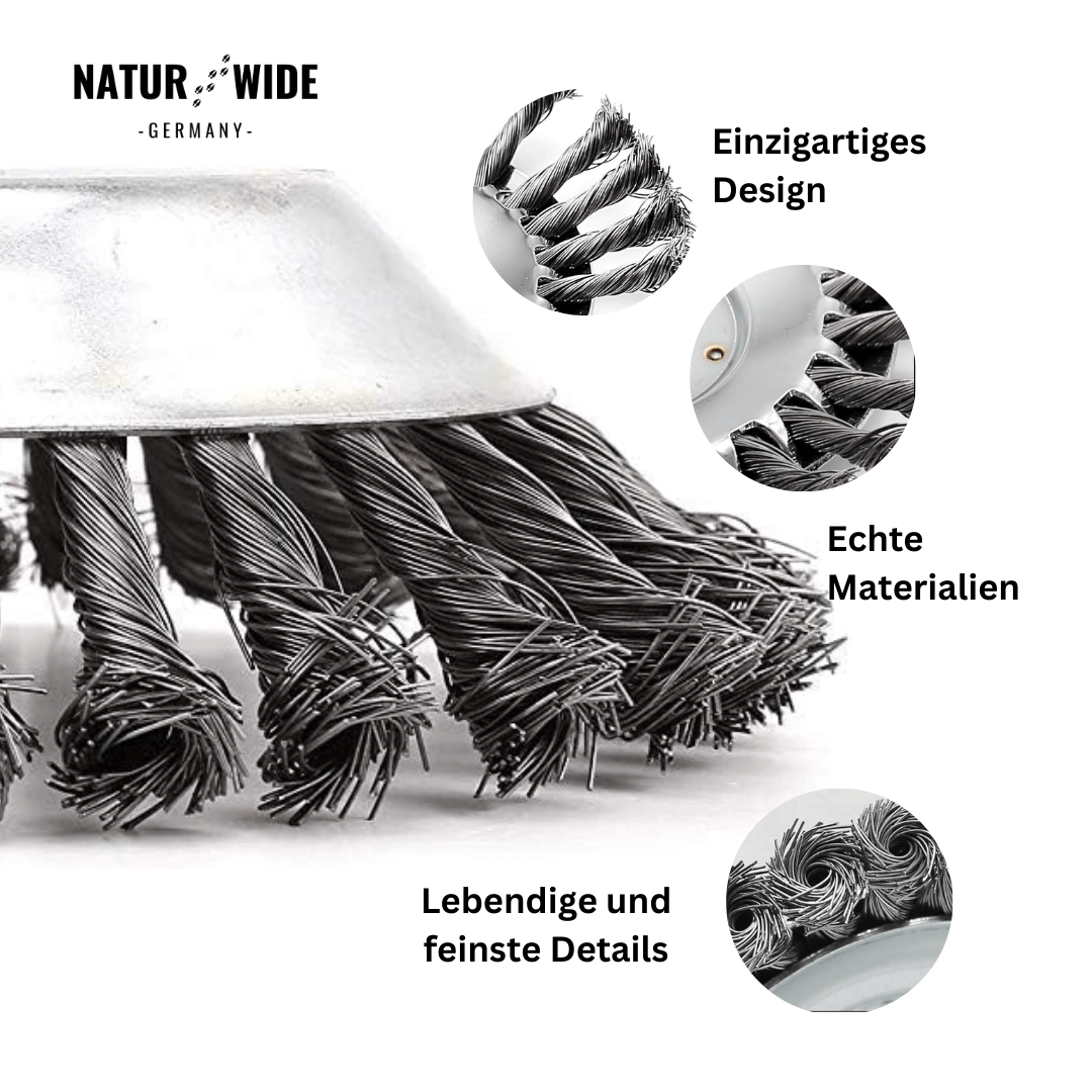 Absolut! Die robuste Drahtkonstruktion aus Edelstahl hält selbst Kontakt mit Steinen, Zement oder Beton stand. Der Aufsatz bleibt stabil und einsatzbereit – ohne an Leistung zu verlieren.