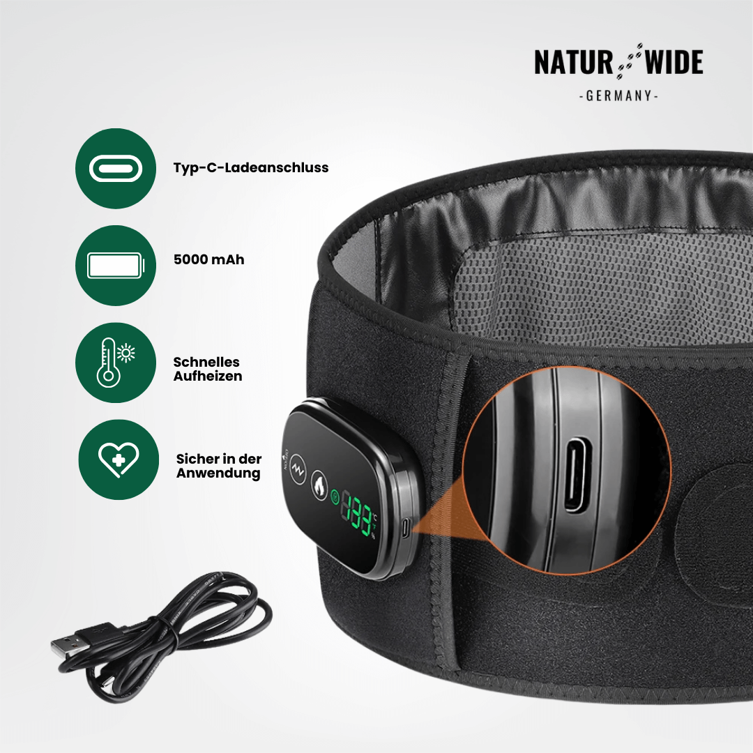 Dank des leistungsstarken 5000mAh Akkus sind Sie nicht an eine Steckdose gebunden. Ob im Büro, auf dem Sofa oder unterwegs – genießen Sie bis zu 30 Minuten (automatischer Timer) pure Entspannung. Der Gürtel ist per USB Type-C wiederaufladbar und somit immer einsatzbereit, wenn Sie ihn brauchen.