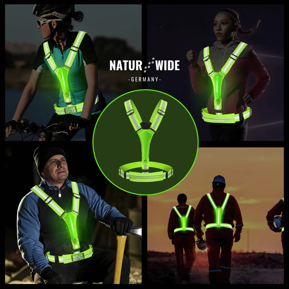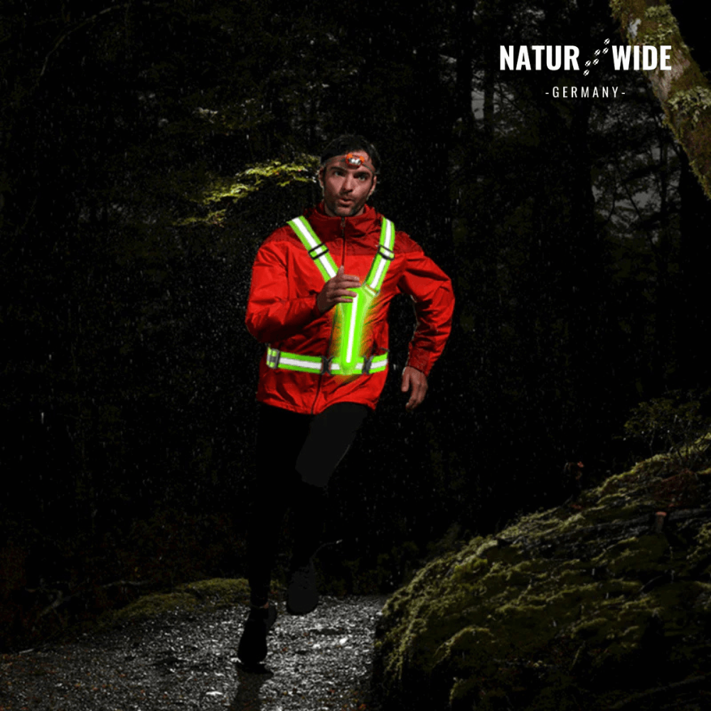 Die RunSafe Weste sorgt mit ihrer leistungsstarken LED-Beleuchtung und reflektierenden Elemente dafür, dass du aus jeder Richtung sichtbar bist. Ob beim Laufen, Radfahren oder Gassi gehen – du wirst frühzeitig erkannt und bewegst dich sicher durch die Dunkelheit.