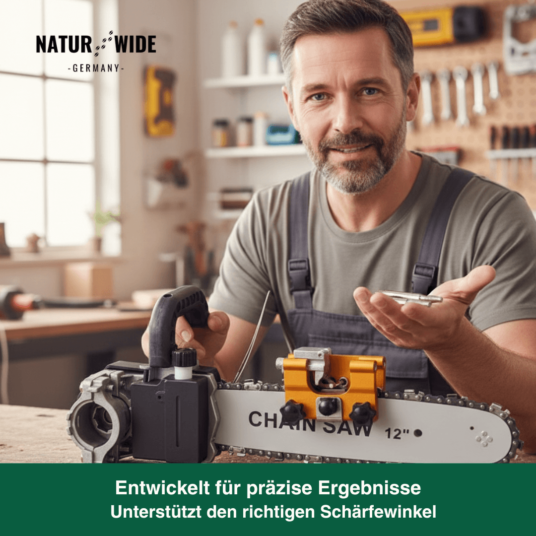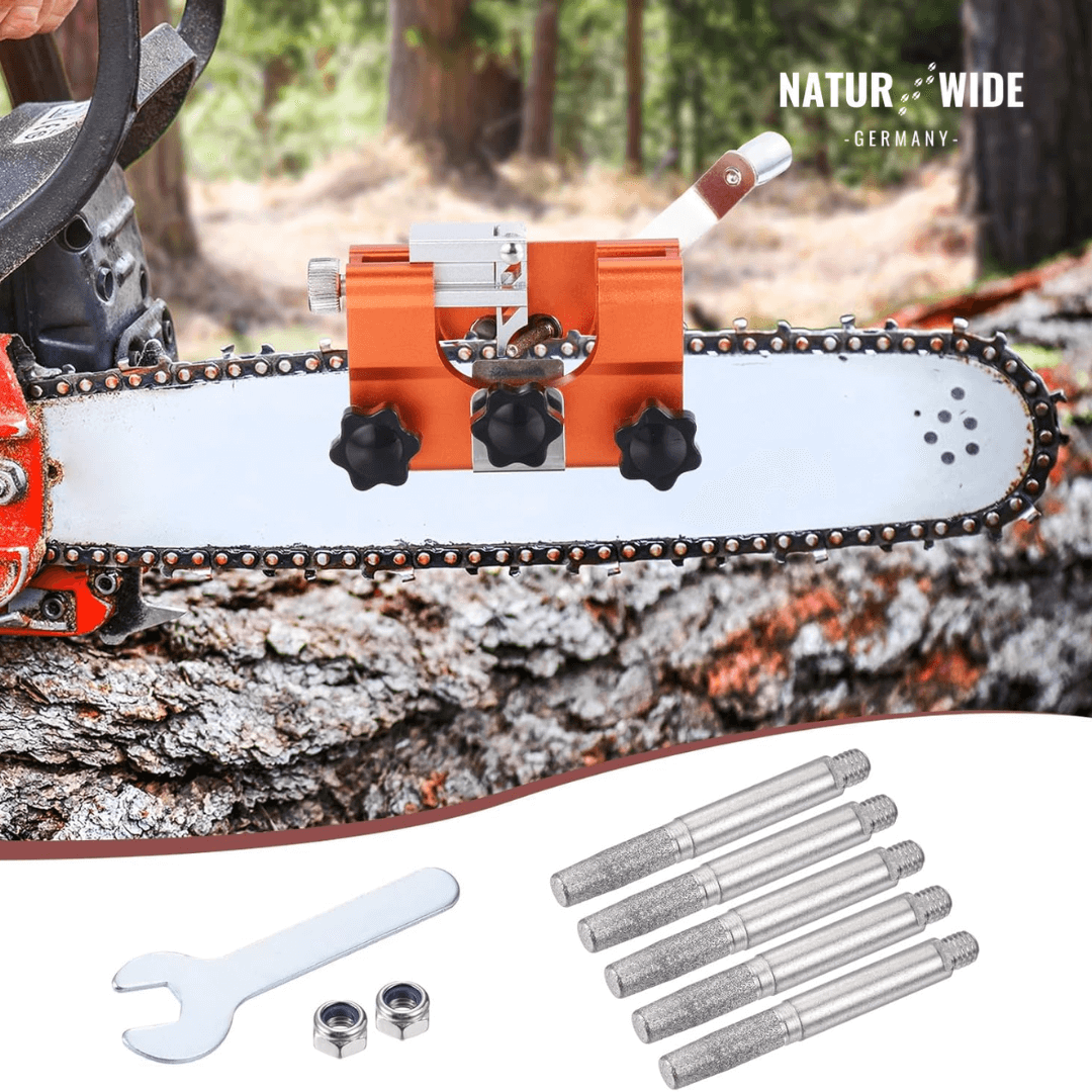 Der Schleifkopf ist kompatibel mit den meisten tragbaren Kettensägen-Schärfern (Kurbel-Typ). Er wurde entwickelt, um die Zähne von Kettensägen und Elektrosägen exakt zu bearbeiten.