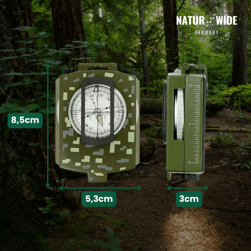 Das widerstandsfähige Metallgehäuse schützt den Kompass vor Wasser, Stößen und rauen Bedingungen, damit du ihn überall bedenkenlos einsetzen kannst.